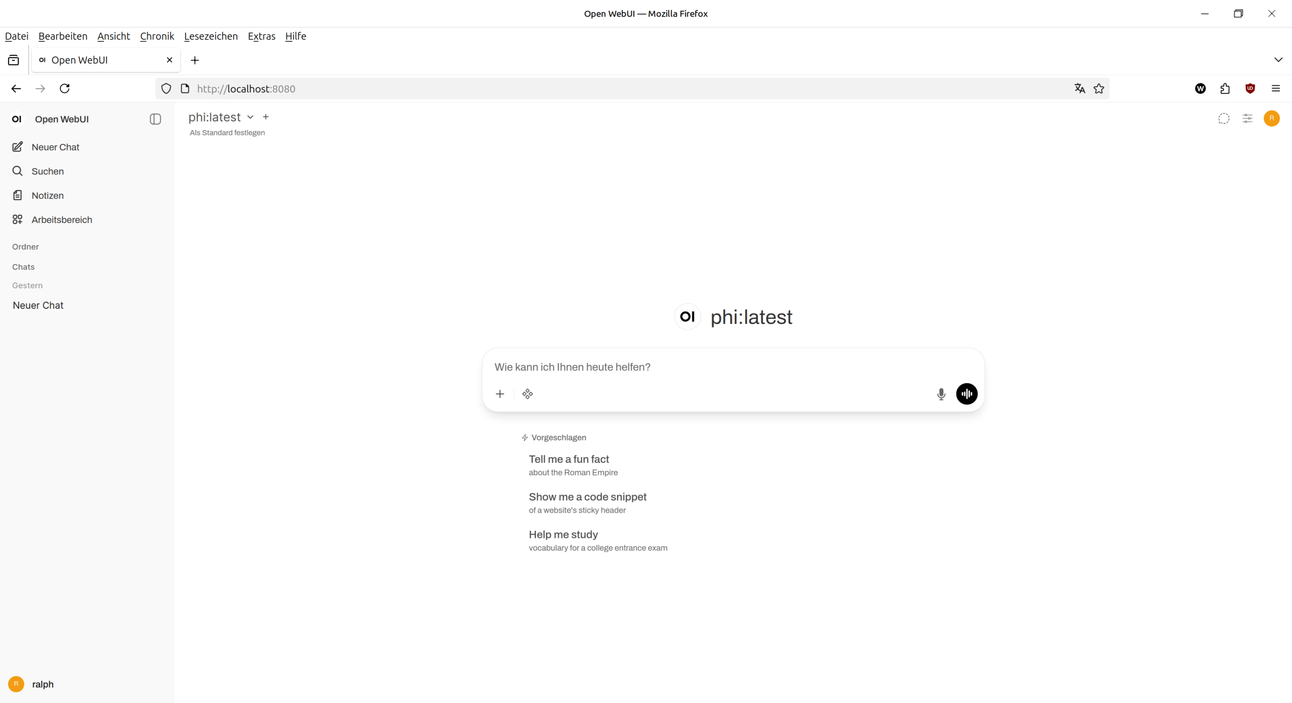 Ein Kommentar von Gerhard Stein zu dem letzten Post auf Linkedin (vielen Dank ;-)) hat mich dazu gebracht, neben Ollama auch Open WebUI zu installieren. Zuerst in einem Docker-Container, aber damit war ich nicht zufrieden. Mit einer venv unter Python habe ich aber eine brauchbare Umgebung für das System eingerichtet. Das kann man für einen Zugriff auf die Modells, die mit Ollama installiert sind, über einen lokalen Webserver und dann aus einem Browser nutzen.